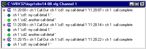Primary call details are displayed on the first line of the call in VBVRLog, so they can be seen in unexpanded mode in the log window. |